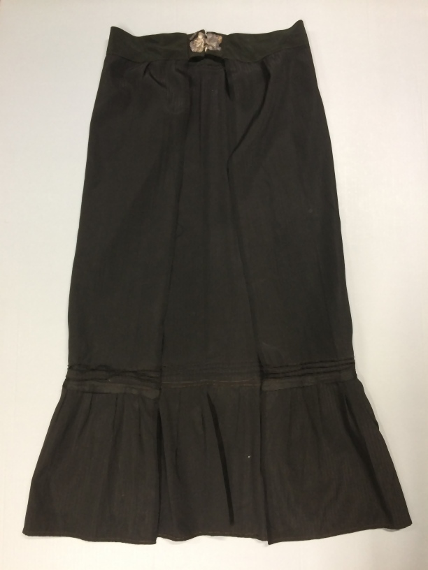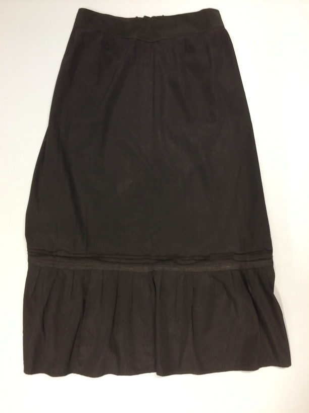 Zwart schort met aangenaaide strook, stof heeft transparante strepen