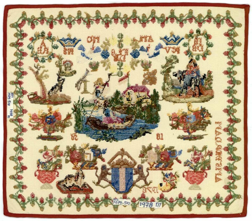 Textielwerken, meestal van fijne stof, waarop door vrouwen en meisjes in verschillende steken is geborduurd en die bedoeld zijn om in te lijsten. Ze werden doorgaans gemaakt door beginnelingen om hun vaardigheden te tonen. Kenmerkend zijn een combinatie van steken, motieven, letters en verzen, en vaak de voltooiingsdatum en de naam van de borduurster. (AAT-Ned)
