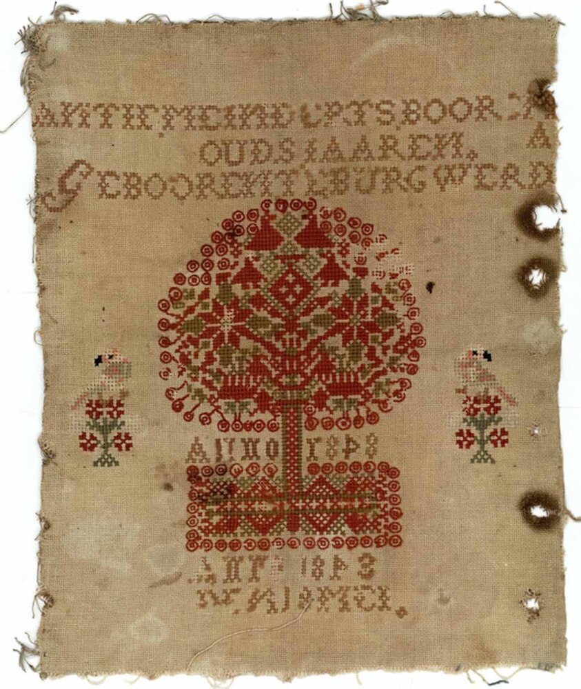 Merklap met levensboom gemerkt door (J)Antje Meinderts Boorsma, anno 1848