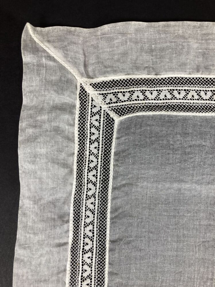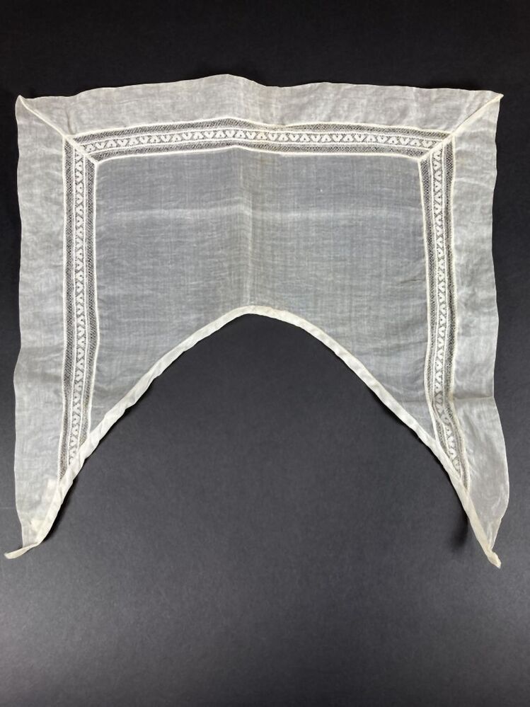 Rechthoekig kraagje van glasbatist en machinaal kant