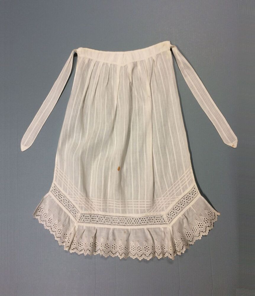 Schort van wit katoen met ingeweven strepen met ajoureffect, machinaal broderie kant