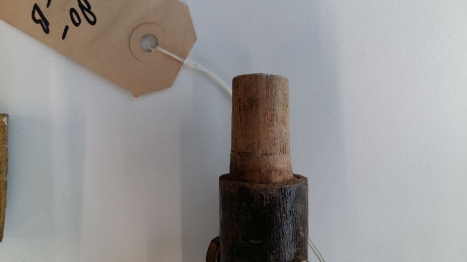 Draagstok van donkerbruin gebeitst hout in twee delen