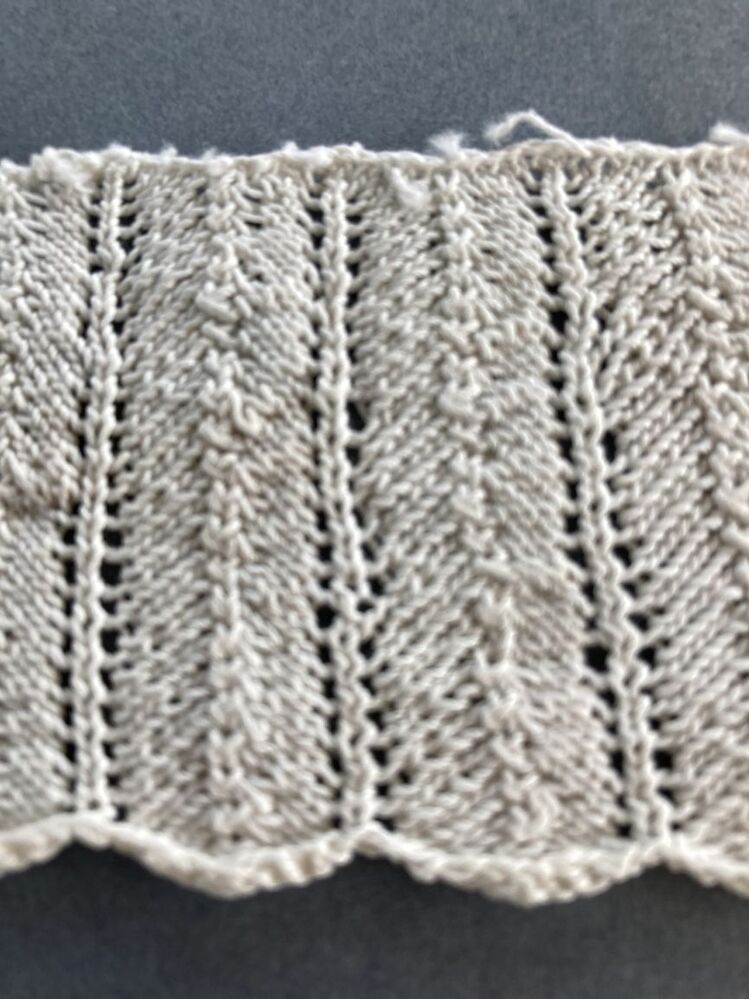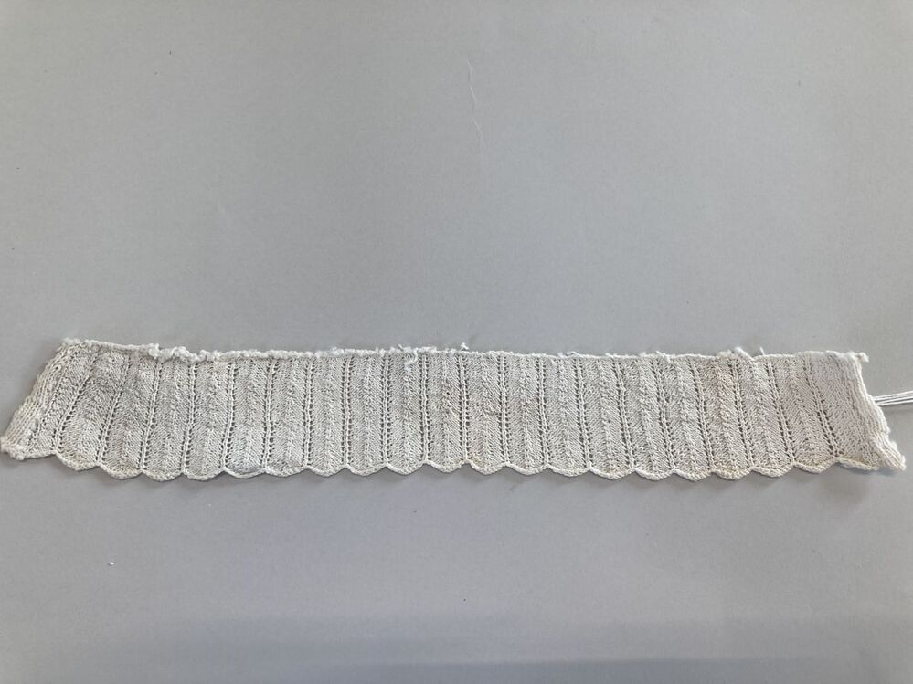 Tipmutsstrook van dun katoen, breiwerk met zigzagpatroon en ajour strepen