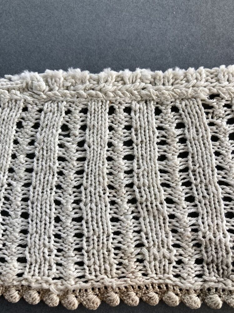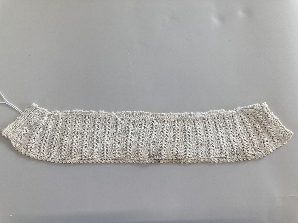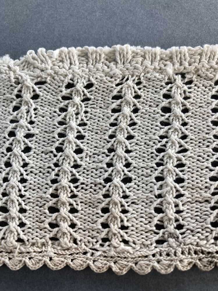 Tipmutsstrook van dun katoen, breiwerk met vertikale ajourstrepen