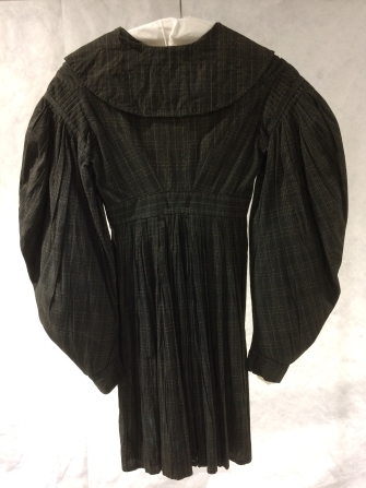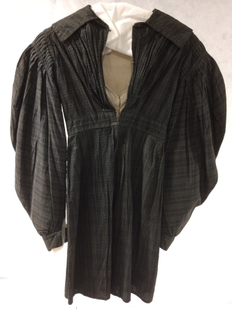 Jak met schapeboutmouwen van bruin-grijs katoen met ingeweven ecru ruiten en platte kraag