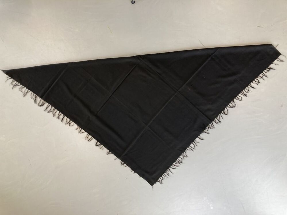 Omslagdoek voor in de rouw, van zwart kamgaren serge, aan twee zijden franje
