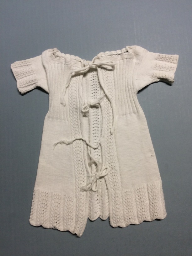 Borstrok van wit katoen met ajour waaier banen, onderdeel van groep van vier