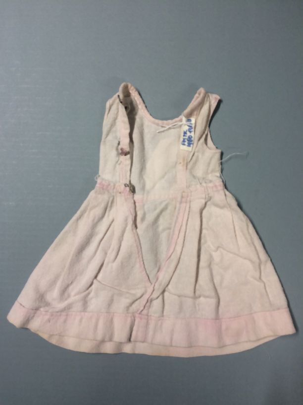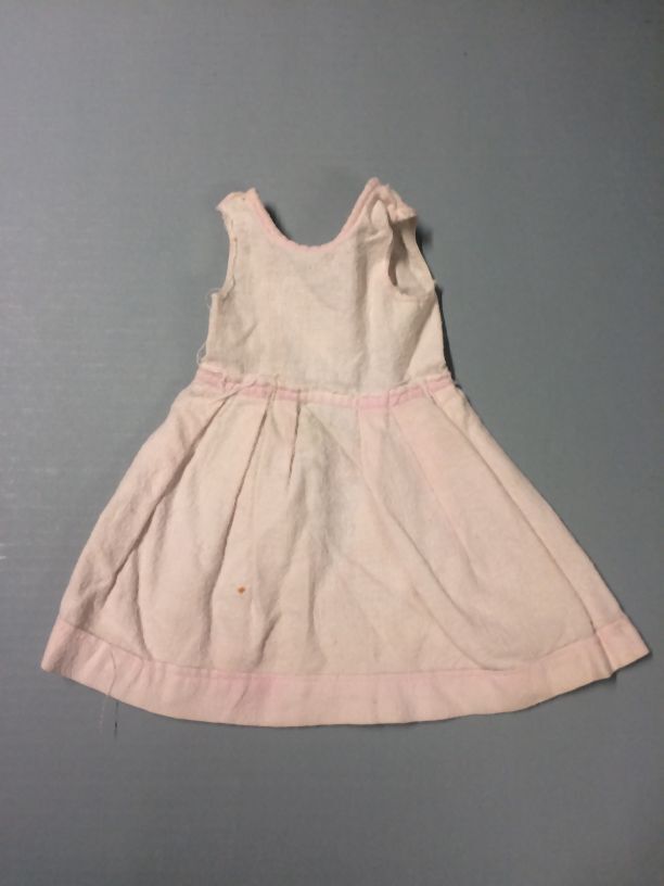Onderjurk van roze verschoten flanel, bestaande uit lijf en rok, onderdeel van groep van vier