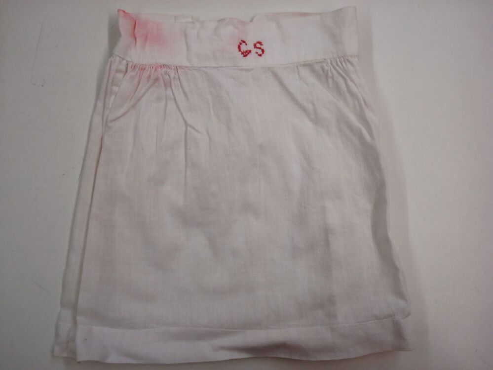 Onderrok van wit katoen, met rode kruissteek merk GS, onderdeel van groep van acht