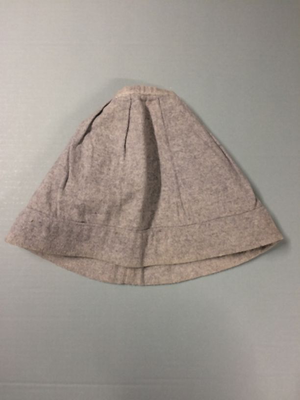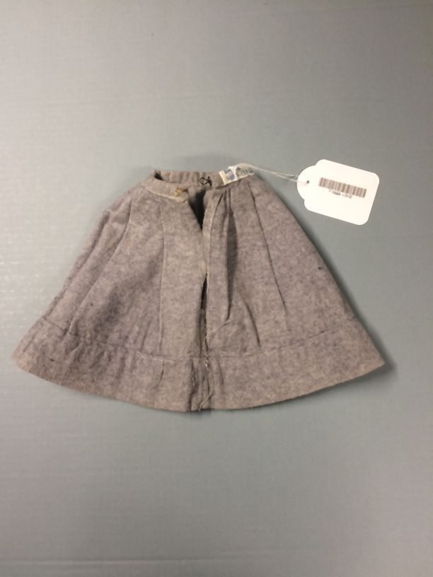 Onderrok van grijs flanel, afgezet met wit-rood band bij zoom, onderdeel van groep van acht