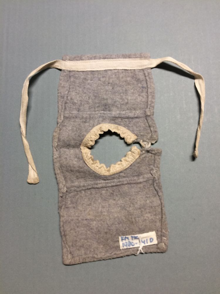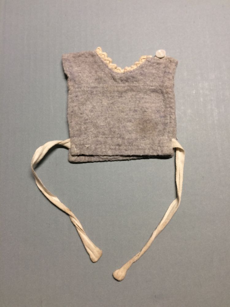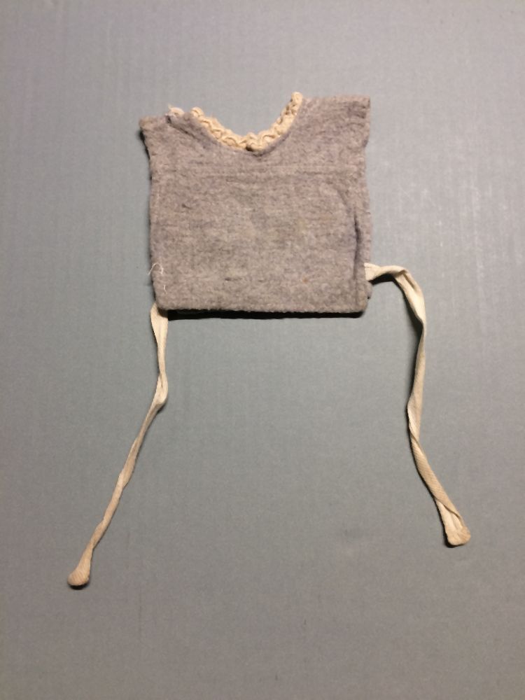 Kroplap van grijs flanel en wit machinaal engels borduursel