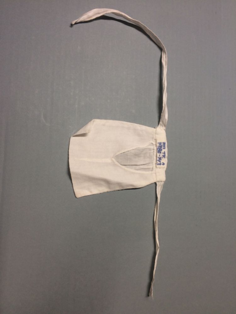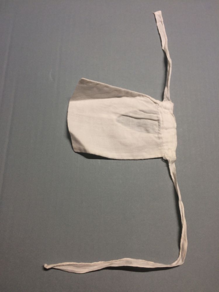 Voorspanzak van wit katoen, gerimpeld aan tailleband