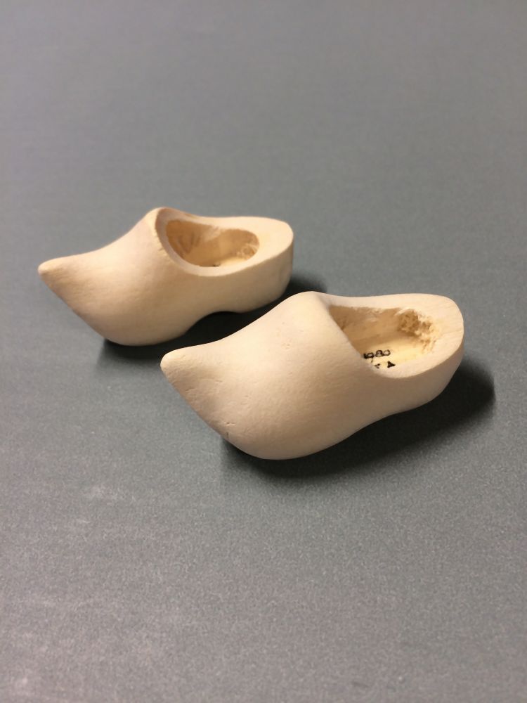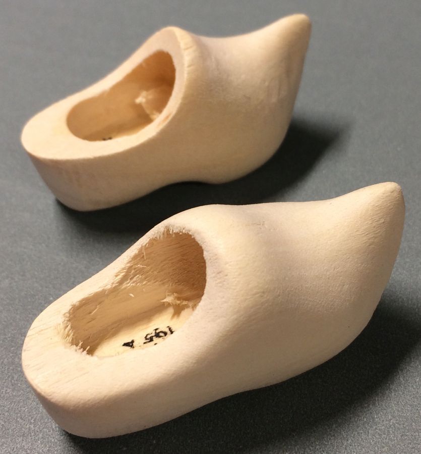 Klompen voor de pop, ongeverfd blank hout, groep van twee paar