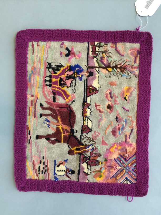 Borduurstuk, tapisserie op traminette met voorstelling van een winters landschap