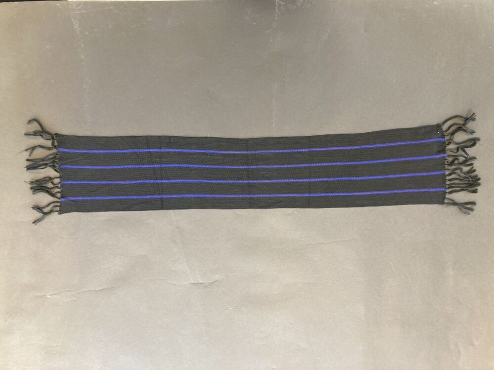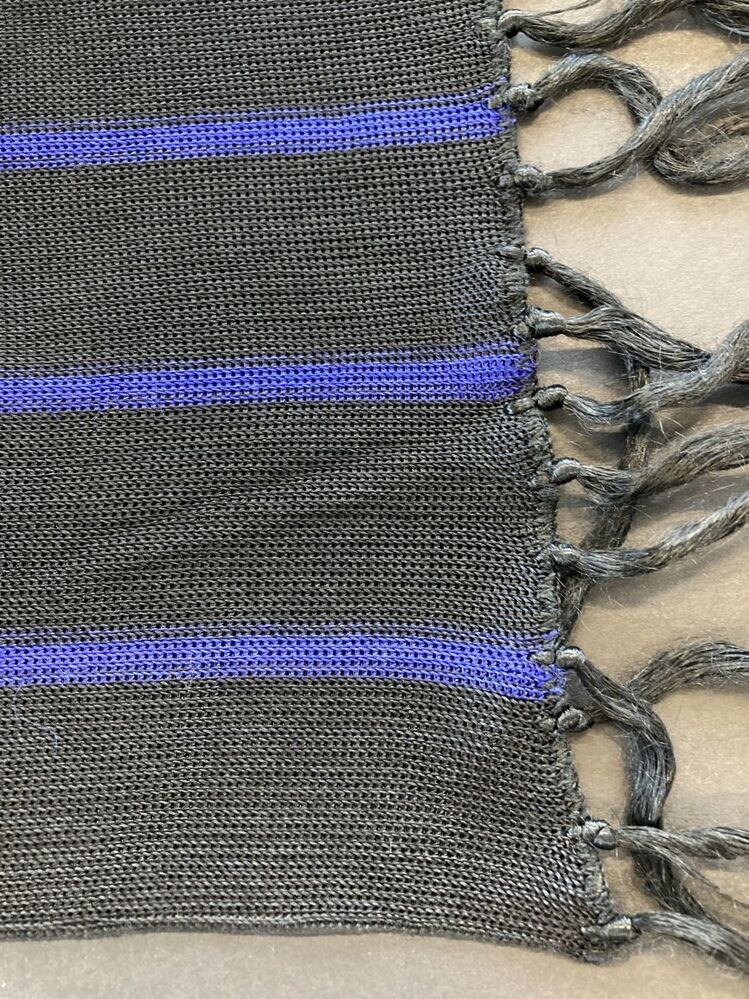 Machinaal gebreid gestreept sjaaltje met geknoopte franje aan de korte uiteinden