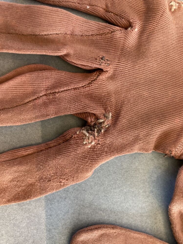 Bedekkingen voor de hand die iedere vinger apart omsluiten en soms doorlopen tot over de pols en arm. https://data.cultureelerfgoed.nl/term/id/cht/975a2d8f-e92e-4ee1-959c-8667df0db693