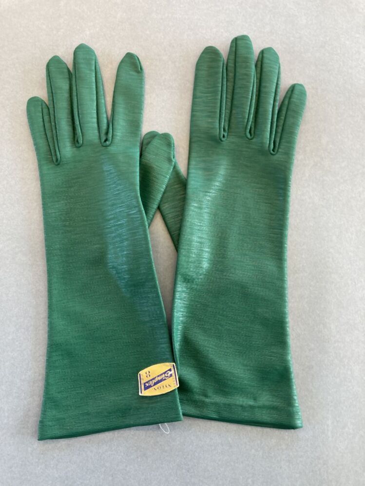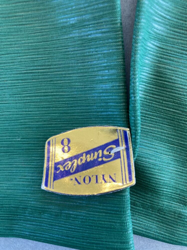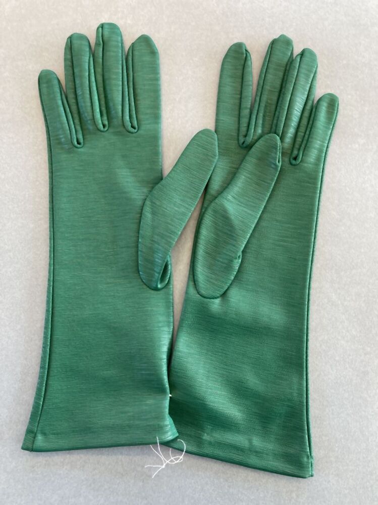 Paar dameshandschoenen van groen gekleurd nylon met ribeffect