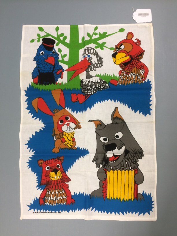 droogdoek van wit katoen, bedrukt met figuren uit de Fabeltjeskrant