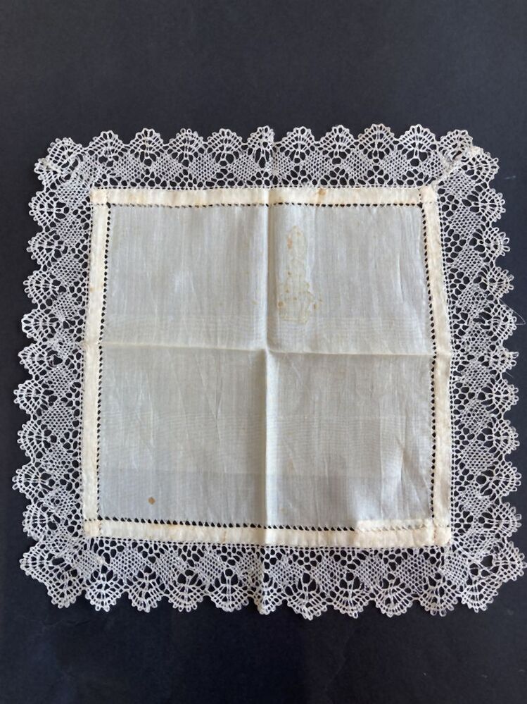 Zakdoek van crème zijde en zijden torchon kloskant rand