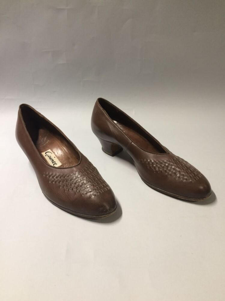 Paar damesschoenen met hoog houten hakje