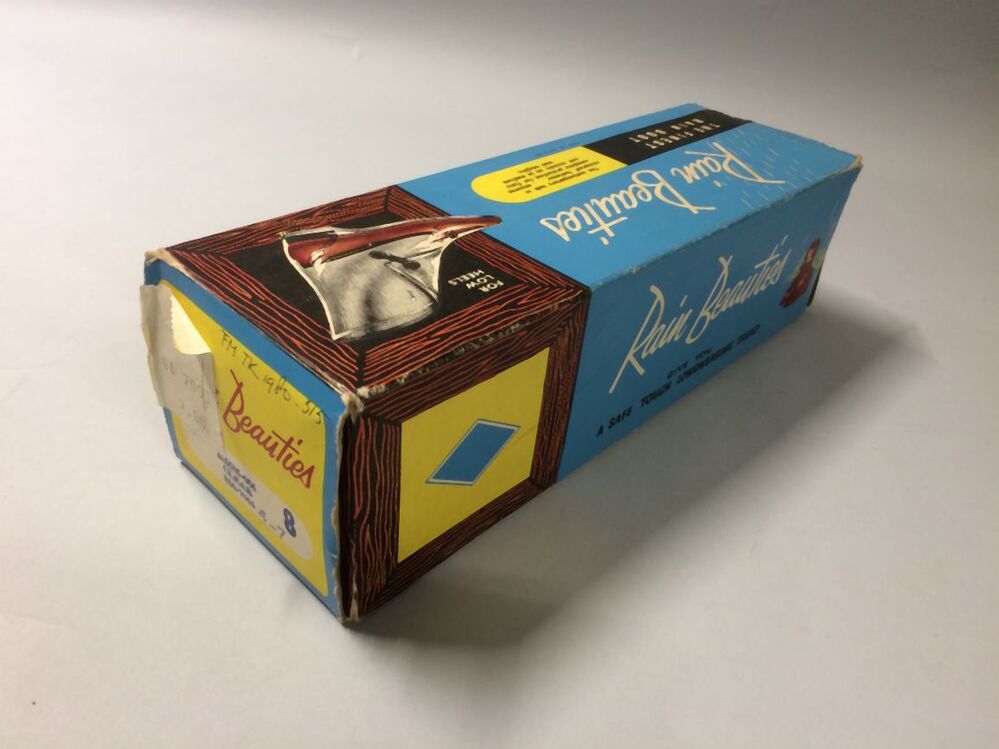 Oorspronkelijke verpakking horend bij een paar regenlaarsjes 'Rain beauties' van transparant plastic