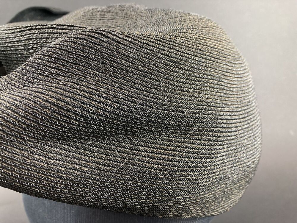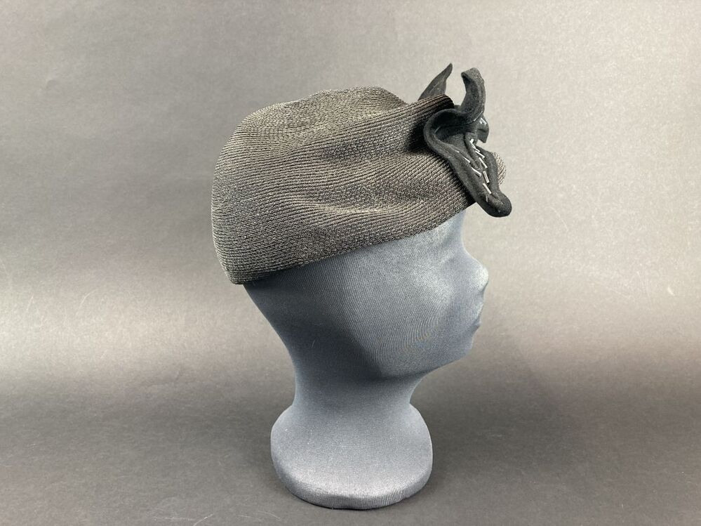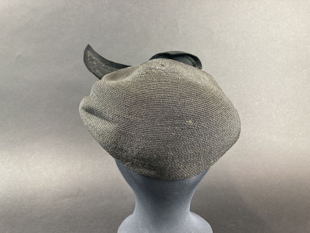 Hoedje genaaid van smal synthetisch stroband, glanzend, spiraalsgewijs genaaid