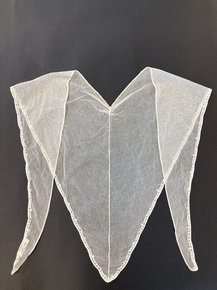 1) hals- of hoofddoek die met een tip (uiteinde) op de rug wordt vastgespeld. https://data.cultureelerfgoed.nl/term/id/cht/00c8692f-af9f-490f-b4ec-ec045b417f30