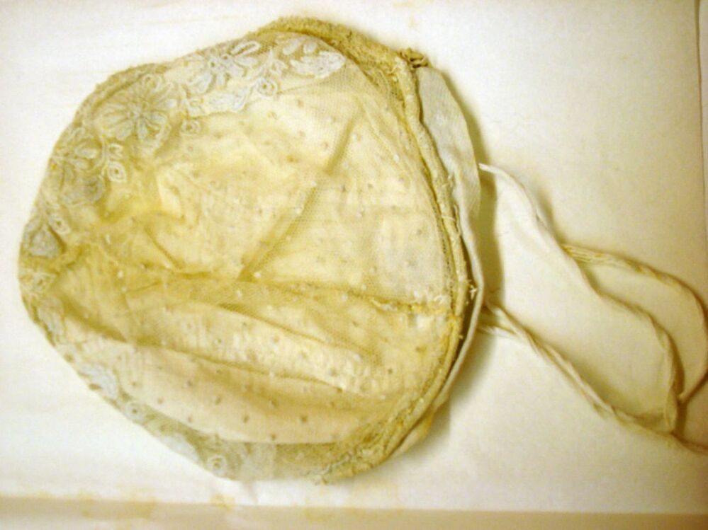 Meisjesmutje van wit katoen, onderdeel van groep van vijf