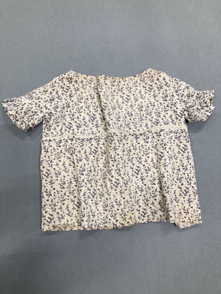 Japonnetje met korte mouwen van lila bedrukte katoen met druiventrossen