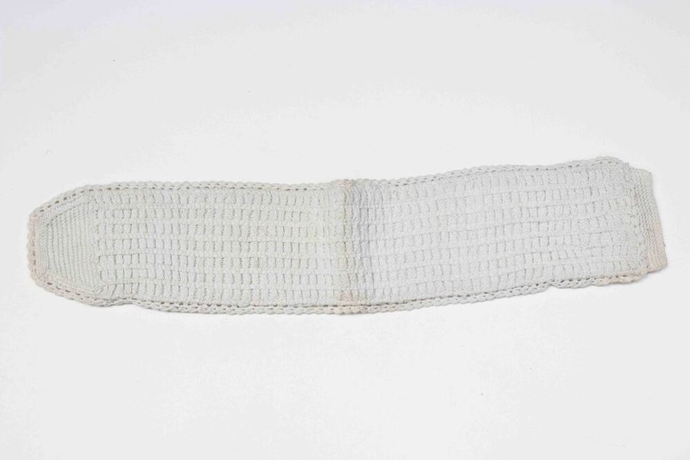 Buikband voor baby, bestaande uit twee lagen, één laag breiwerk, één laag katoen