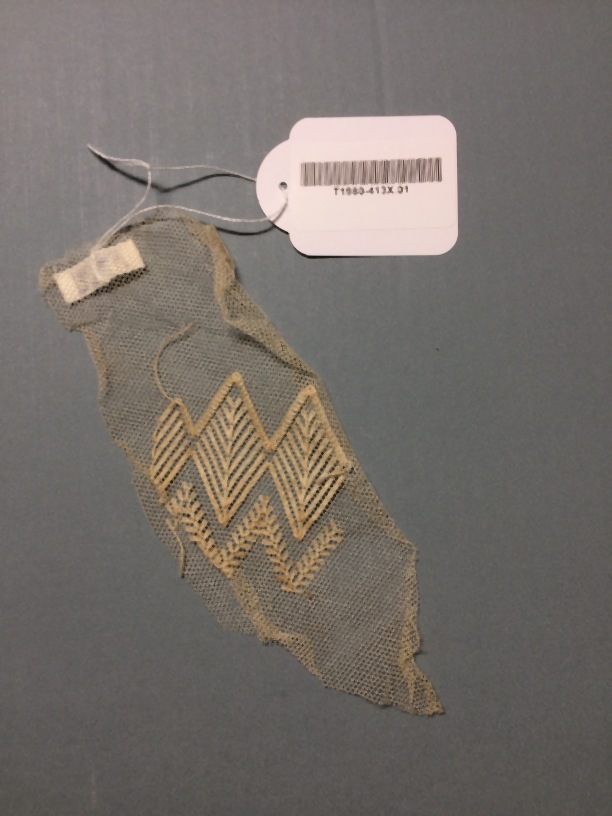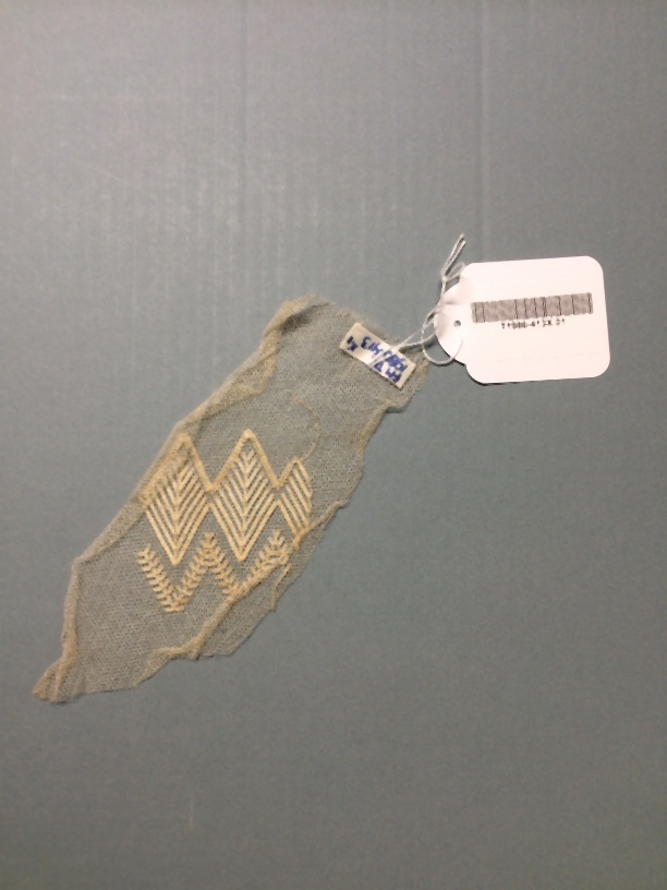 Proeflap tuleborduurwerk, trapeziumvormig stuk met doorgestopte ruiten