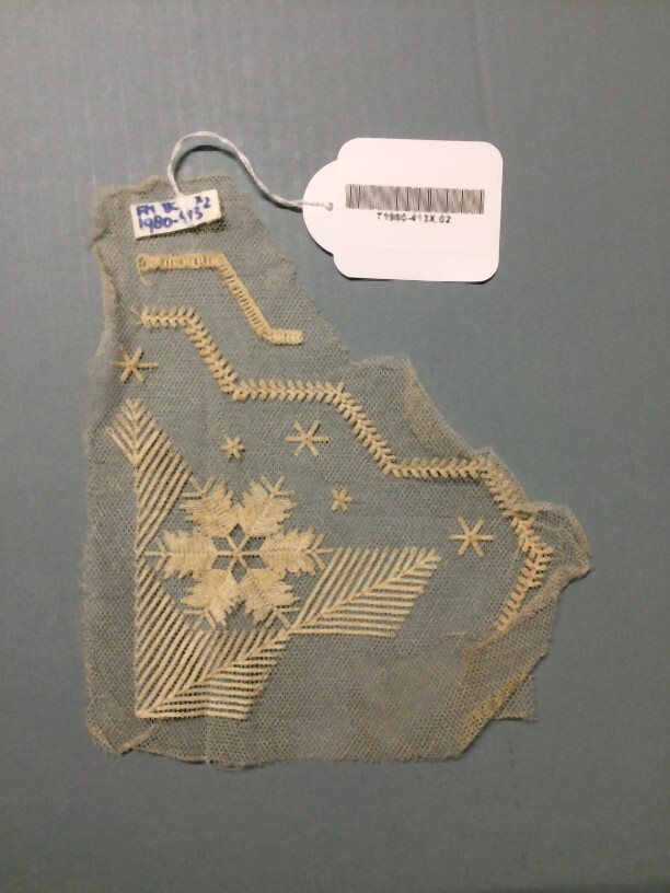 Proeflap tuleborduurwerk, driehoekig stuk met doorgestopte stervorm