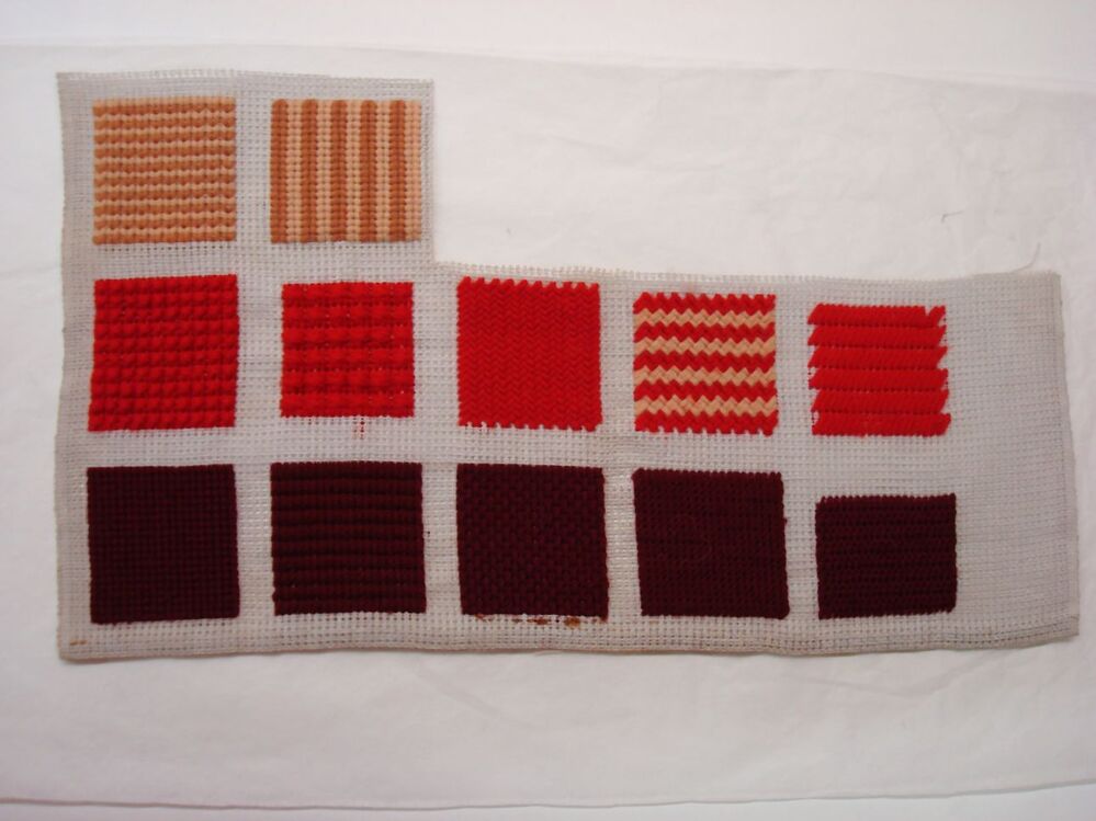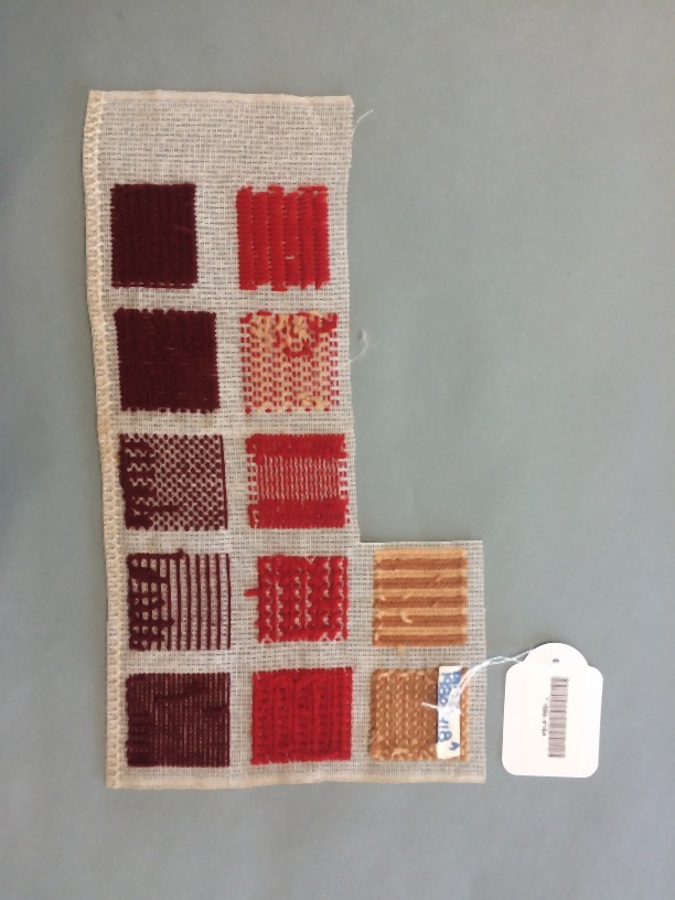 Verwijst naar werken die zich kenmerken door een patroon of ontwerp dat is uitgevoerd in met draad of fijn metaaldraad gemaakte steken. De patronen worden gewoonlijk uitgevoerd op stof, maar ook leer, papier of andere media kunnen worden gebruikt; de werken kunnen bedoeld zijn om ingelijst te worden of om kleding, bedtextiel, meubelbekleding, kussens, altaarkleden, ceremoniële voorhangen of andere zaken te versieren. (AAT)