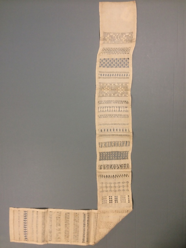 Proeflap van open naaiwerk, linnen lap met naad in het midden, J.d.D.