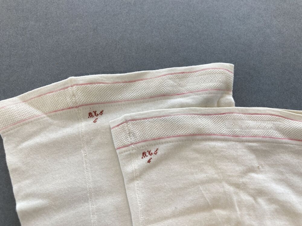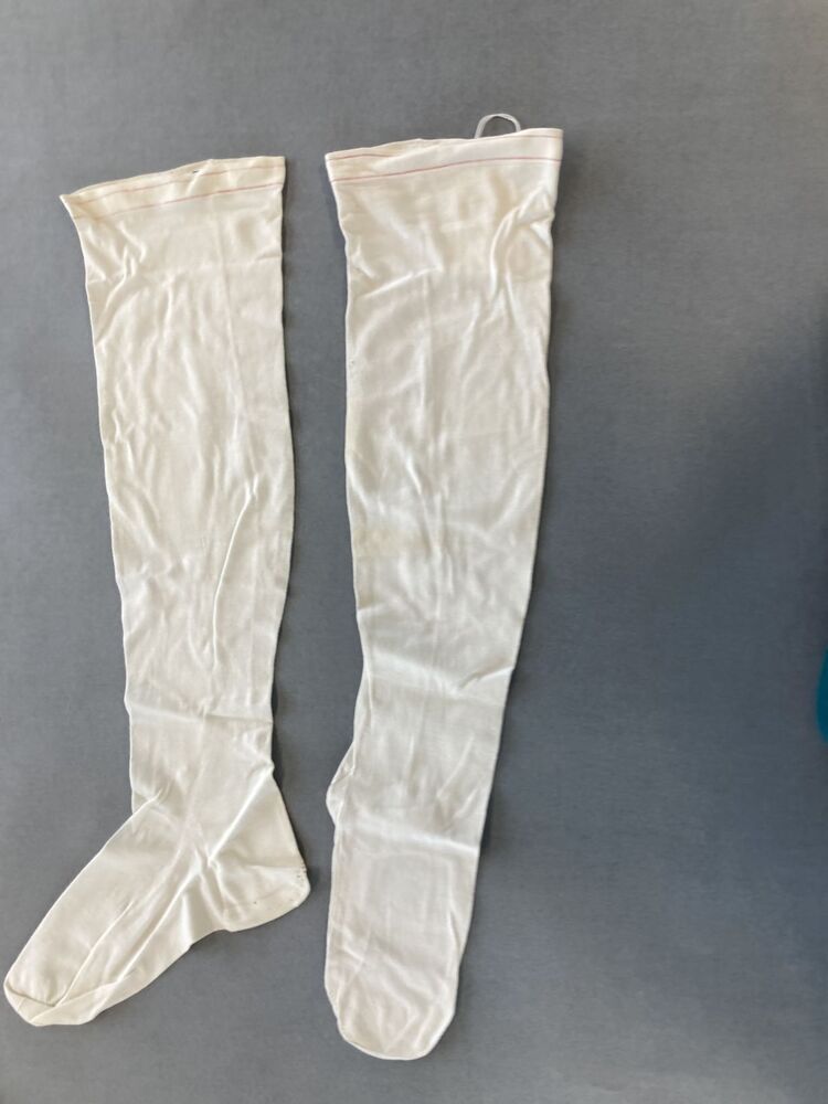 Paar wit katoenen machinaal gebreide kousen, gemerkt AB 6-6