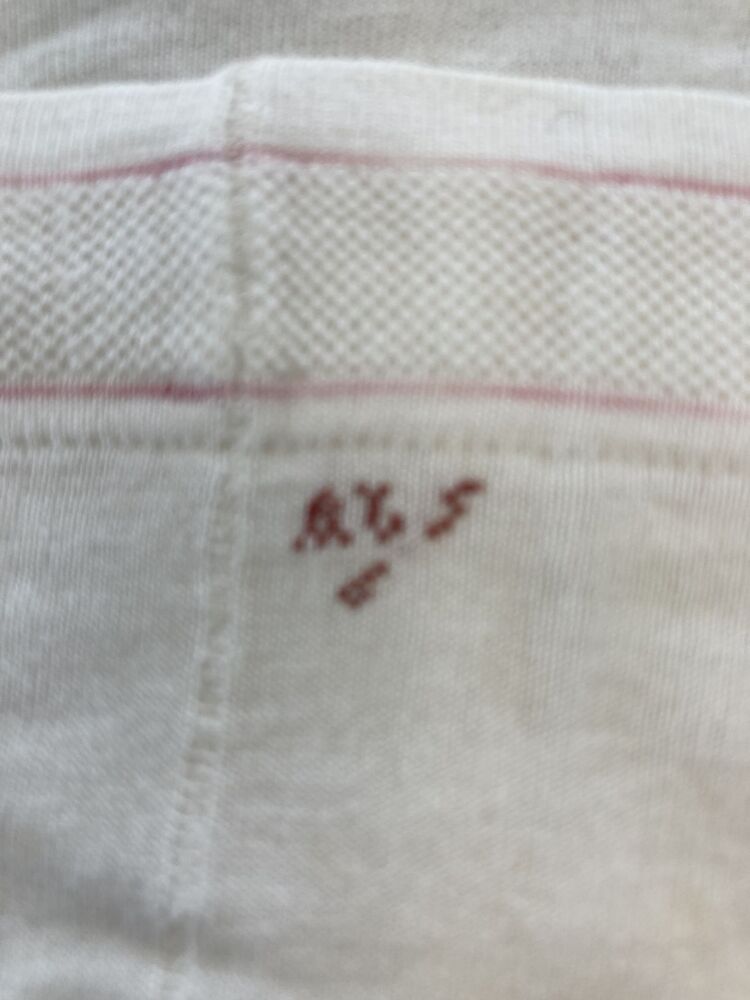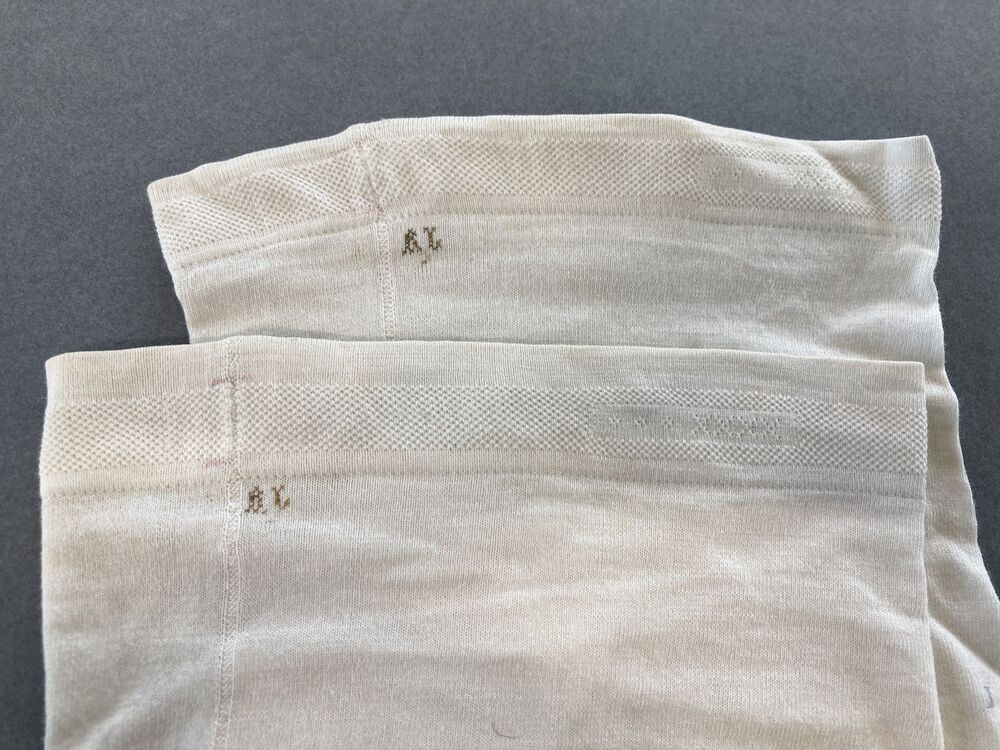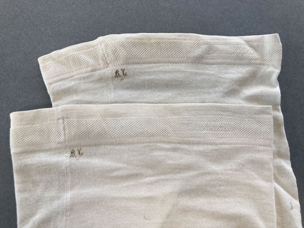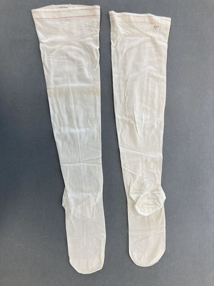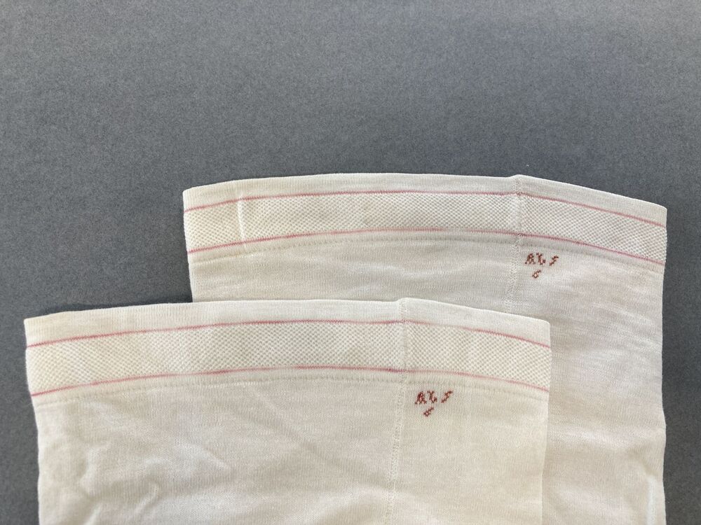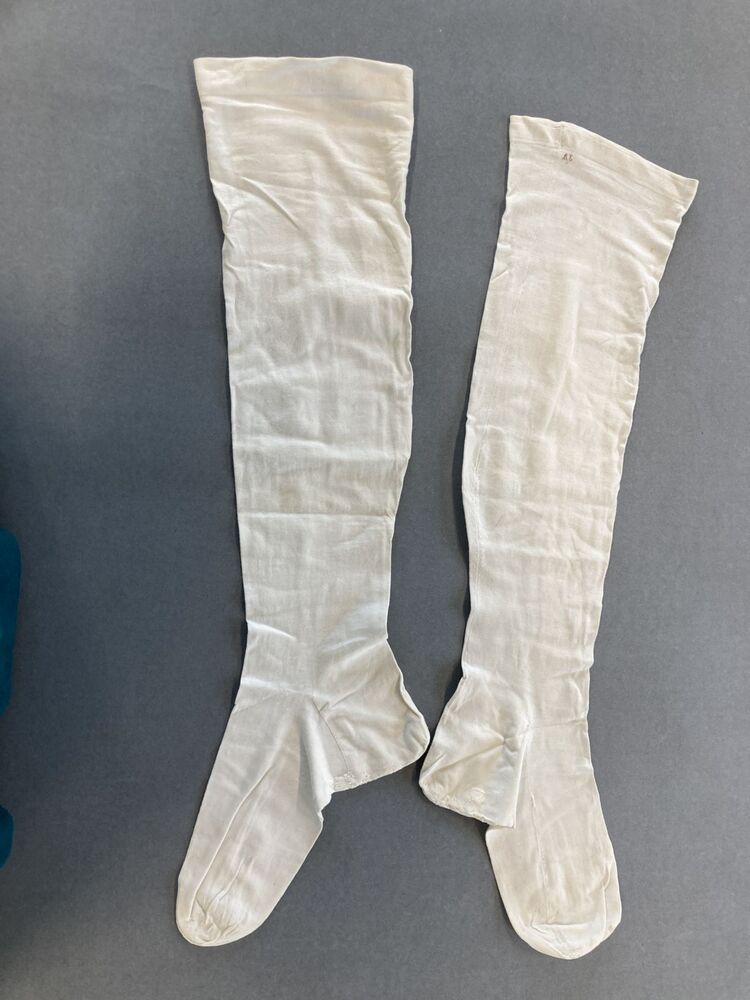 Paar wit katoenen machinaal gebreide kousen gemerkt AB 5 /6