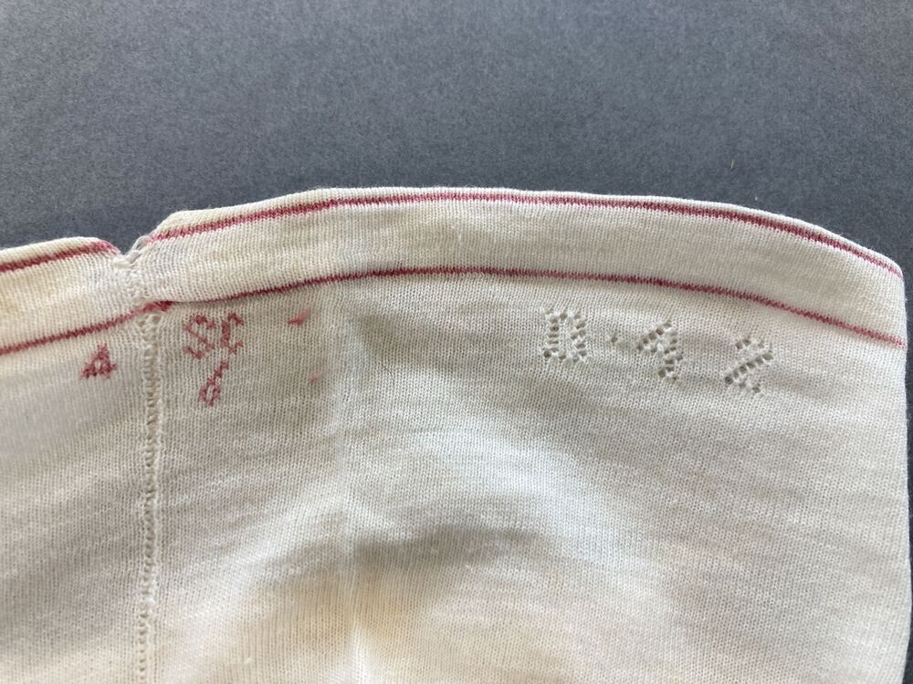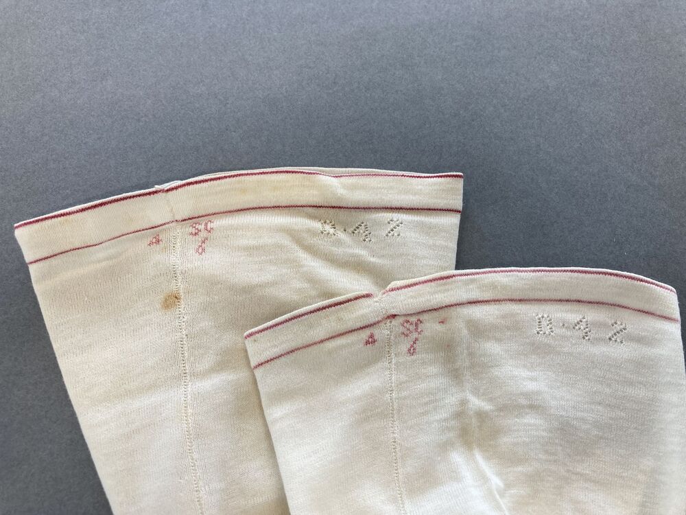 Paar wit katoenen machinaal gebreide kousengemerkt SC 6-4