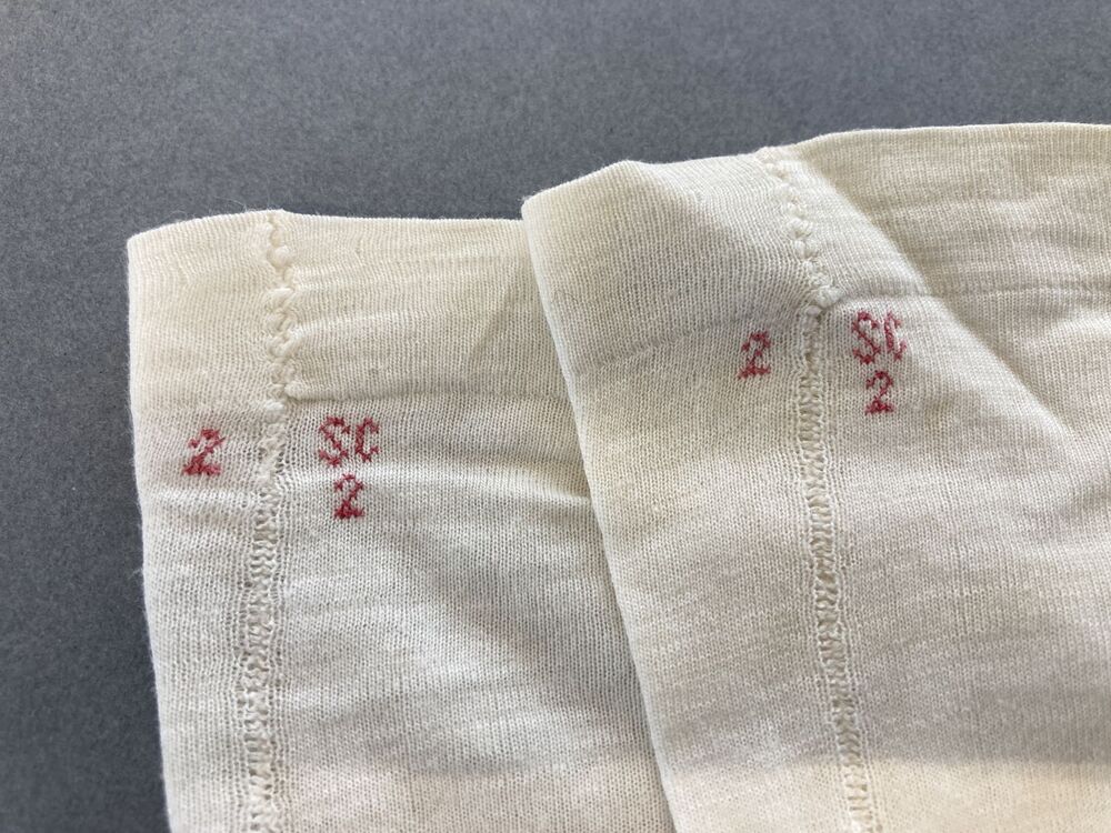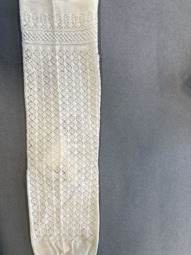 Paar kousen van wit katoen machinaal gebreid met ajourrond de enkel, gemerkt SC 2-2