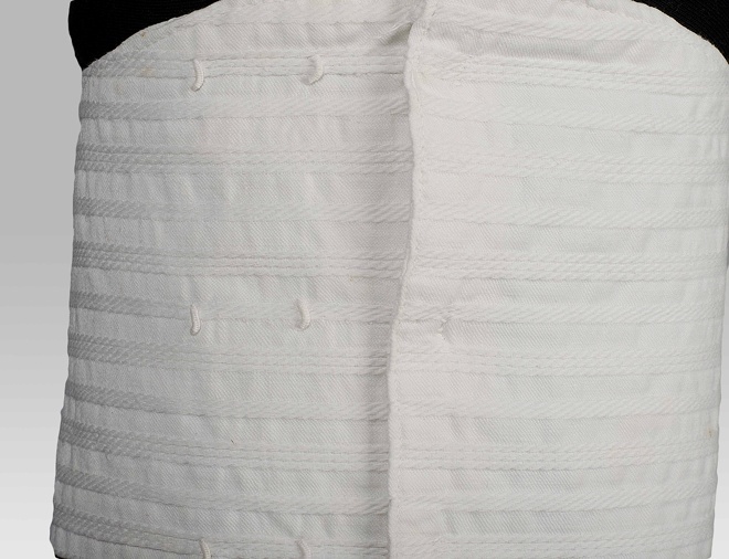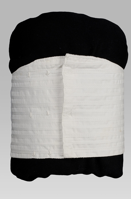 lijfje of korsetje voor baby, gestreept piqué katoen, vijf koperen haken en drie keer vijf trensjes