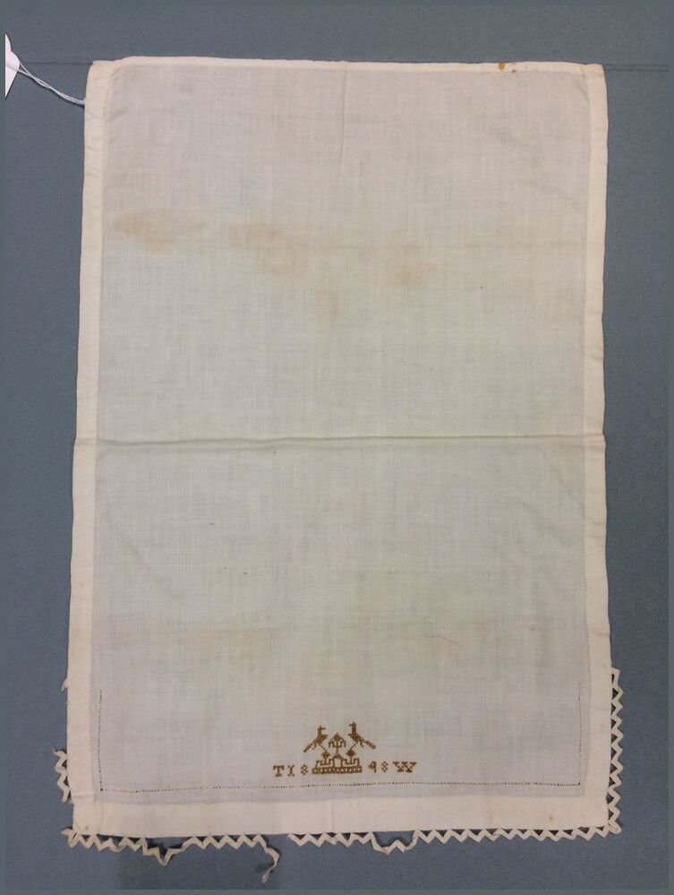 Op het beddengoed in kloosters, pastorieën en huizen van gelovigen werden soms religieuze symbolen geborduurd. Ook ander huisraad droeg deze symbolen. (Religieus Erfgoedthesaurus) https://data.cultureelerfgoed.nl/term/id/cht/46197e42-144e-4d6f-8f16-a00dc48bb09f