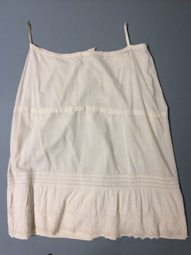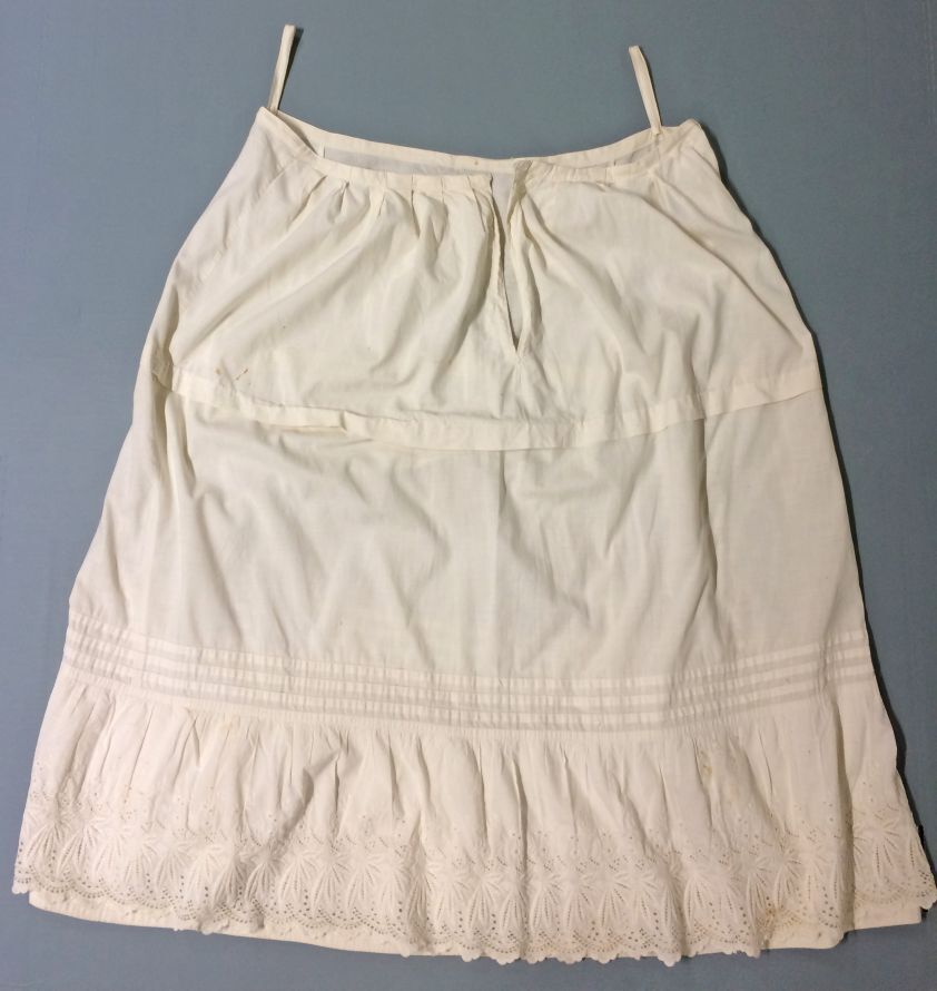 Onderrok, enige lengte banen, onderaan een strook broderie