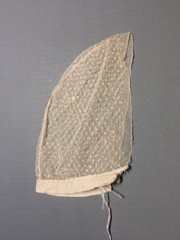 Bol floddermuts, van tule, handgenopt, onderdeel van groep van vier