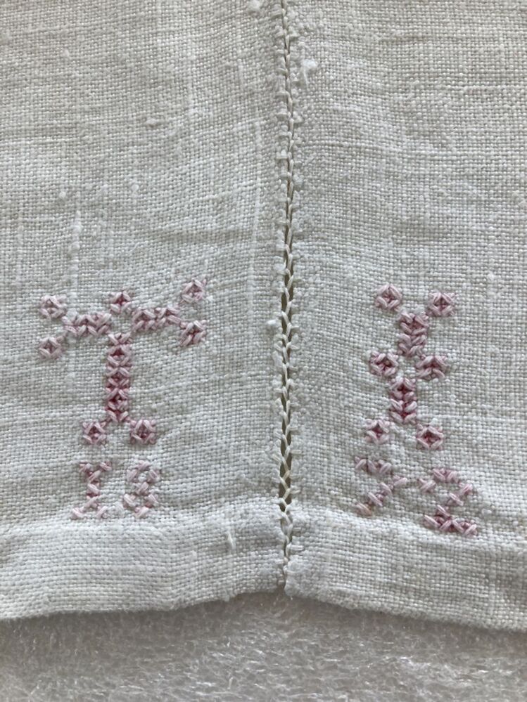 Laken aan weerszijden van naadverbinding is een monogram TI 1872