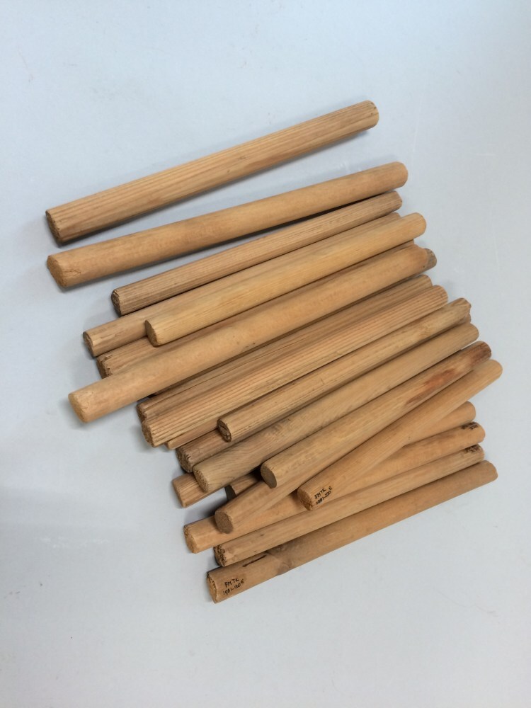 22 Mutsenpijpstokjes, onderdeel van Japanse doos met pijpmateriaal en twee mutsenpijpramen