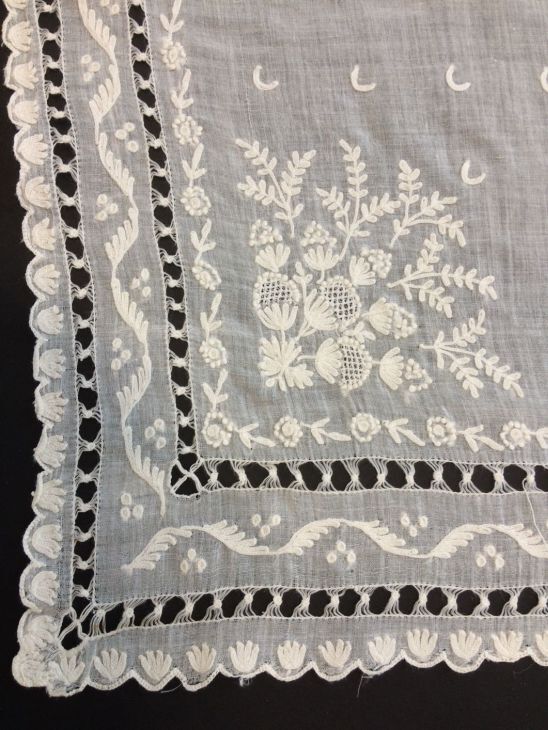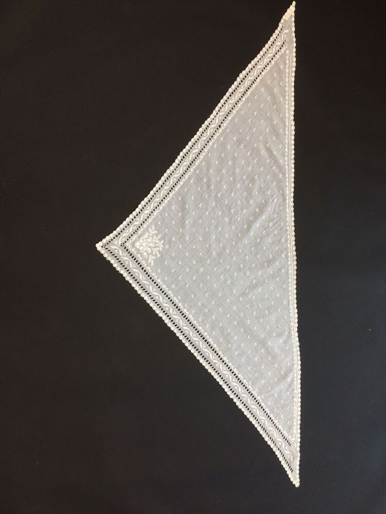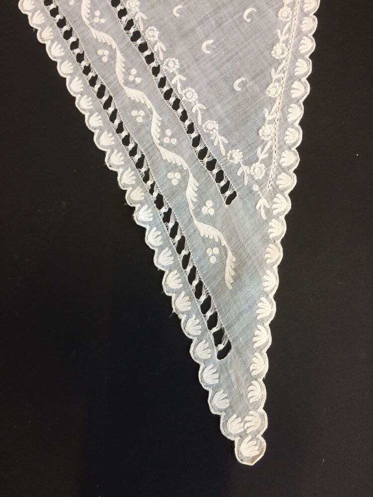 Fichu met getamboereerd 'palm'motief, guirlande en boeket, met randen opennaaiwerk