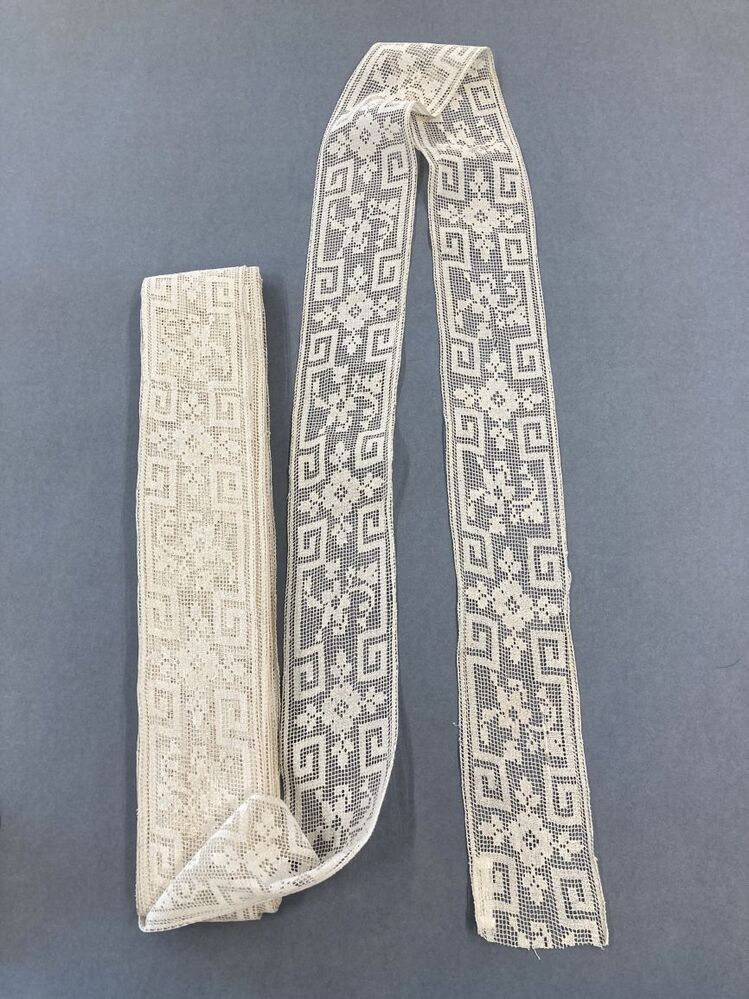 Kant entre-deux van katoen, machinaal filetknoopwerk en doorstopwerk