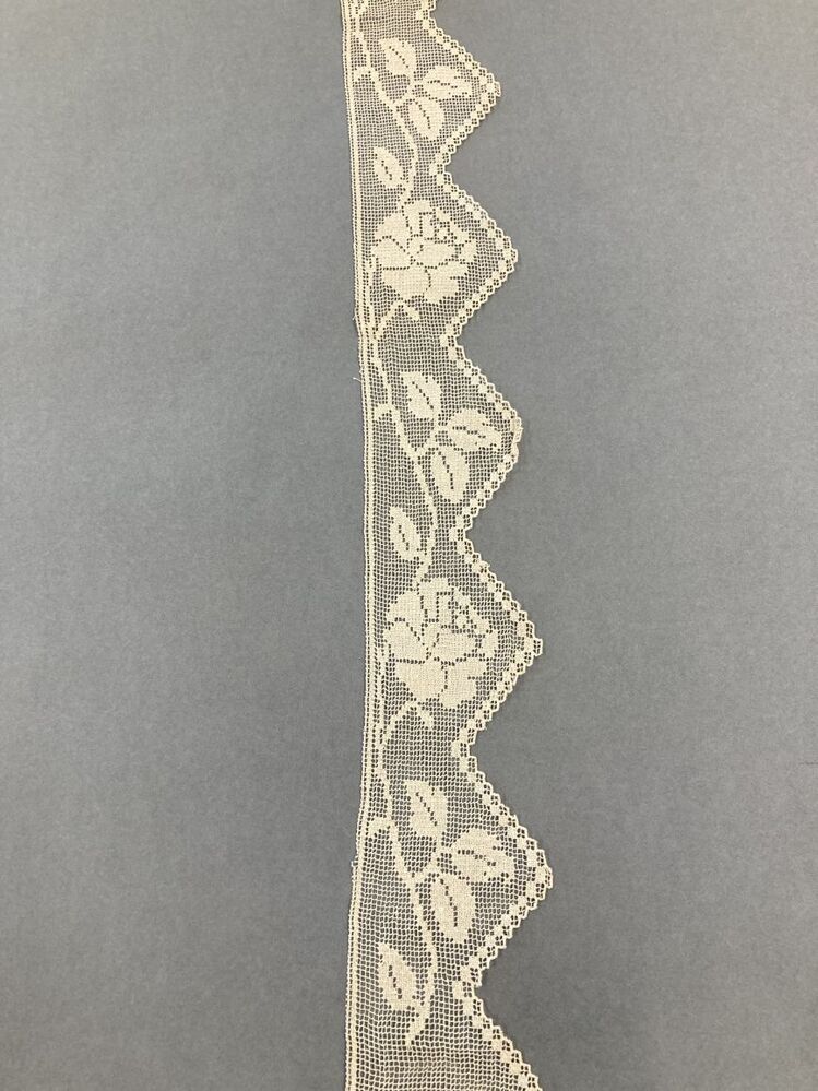 Kantstrook met zigzag zoom van katoen, filetknoopwerk en doorstopwerk met rankende roos