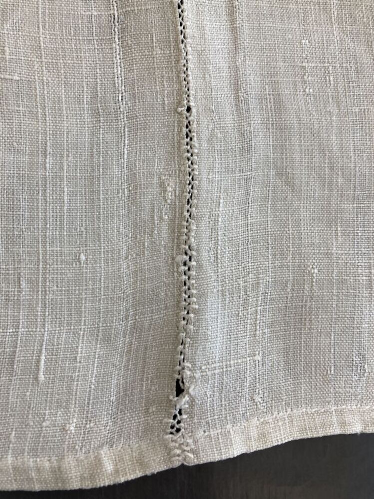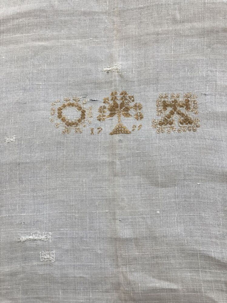 Laken van grof wit linnen met kruissteekjes in goud zijde, levensboom, OA 1795