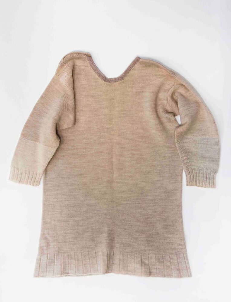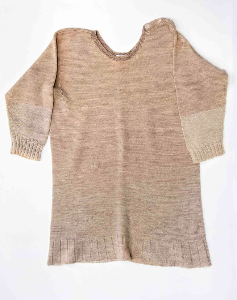 Borstrok, rondgebreid van jaegerkleurige wol met mouw en boord