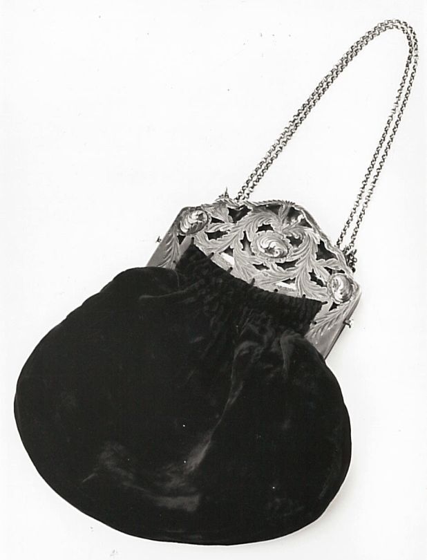 Beugeltas met zilveren beugel en tas van zwart fluweel